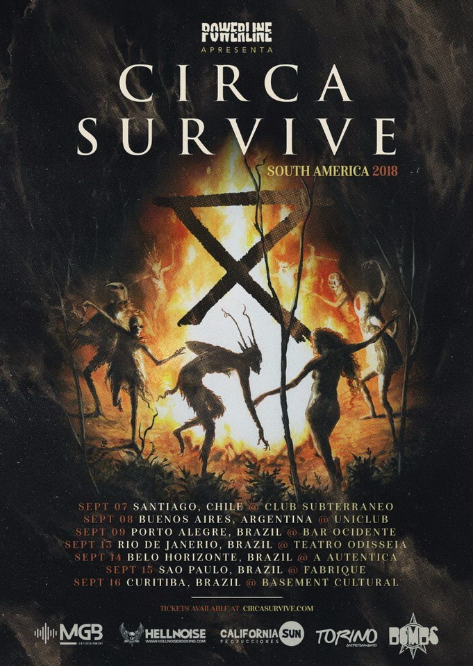 Ícones do rock alternativo e referência do gênero post-hardcore, os americanos do Circa Survive estão finalmente de volta à América do Sul em setembro deste ano, agora com a turnê do sexto álbum The Amulet, considerado seu melhor registro em anos e que congrega todos os elementos dos anteriores: melodias inspiradíssimas, momentos introspectivos, explosões experimentais e pitadas de post-rock. Serão sete datas, cinco no Brasil, com produção da Powerline.