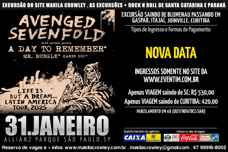 AVENGED SEVENFOLD . SÃO PAULO . NOVA DATA