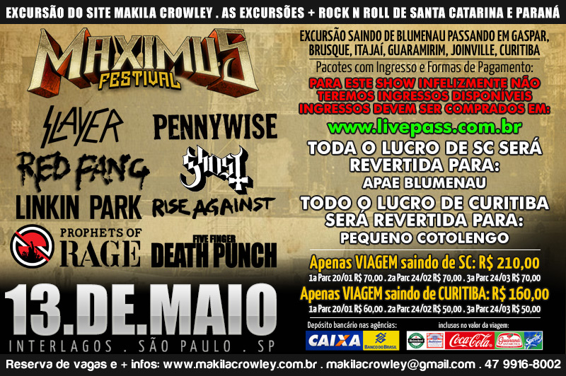 Já que nós não temos apoio de quem deveria nos dar, faremos uma campanha para doar toda renda da excursão do Maximus Festival para APAE de Blumenau.