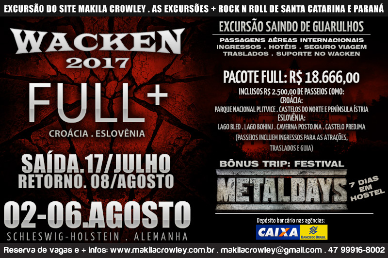 W.O.A. Wacken Open Air 2017 + METAL DAYS . PACOTE FULL