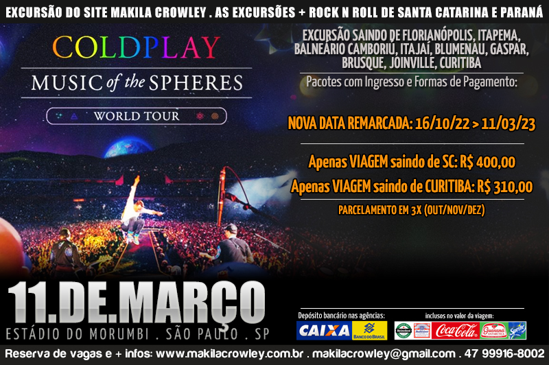 EXCURSÃO PARA O SHOW DO COLDPLAY DIA 11/03 EM SÃO PAULO | Makila Crowley