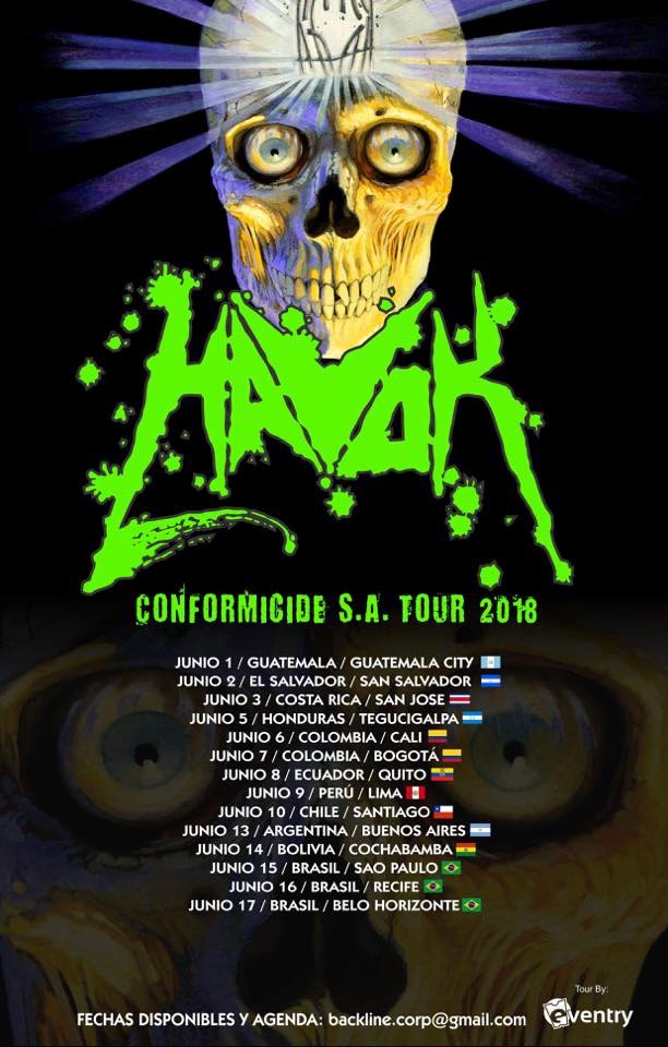A banda americana de thrash metal Havok anunciou a sua turnê Sulamericana “Conformicide S.A. Tour 2018” para o mês de Junho.
