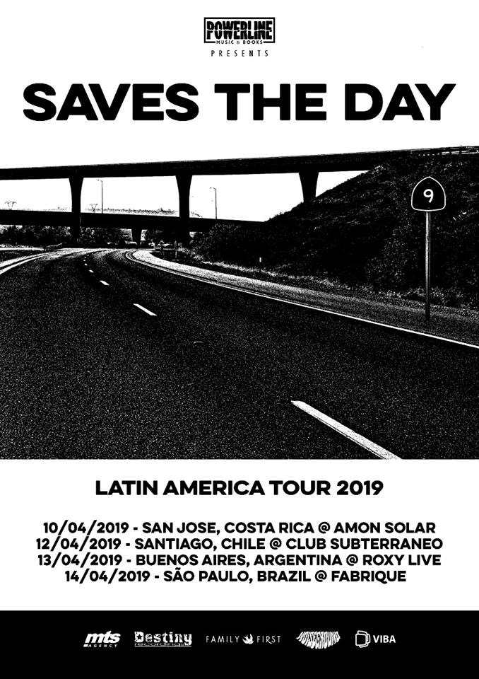 A produtora Powerline anunciou a primeira turnê sulamericana do Saves The Day, no Brasil a data única será em São Paulo dia 14 de abril no Fabrique Club.